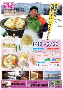ランチは、代表的なメニューが、雪堀ロールキャベツのチーズ焼きや玄米団子入り赤べこスープなどなど。